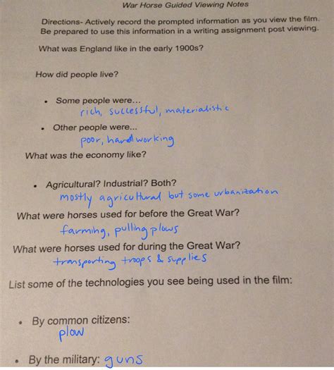 Free PDF WAR HORSE GUIDED VIEWING NOTES rtf